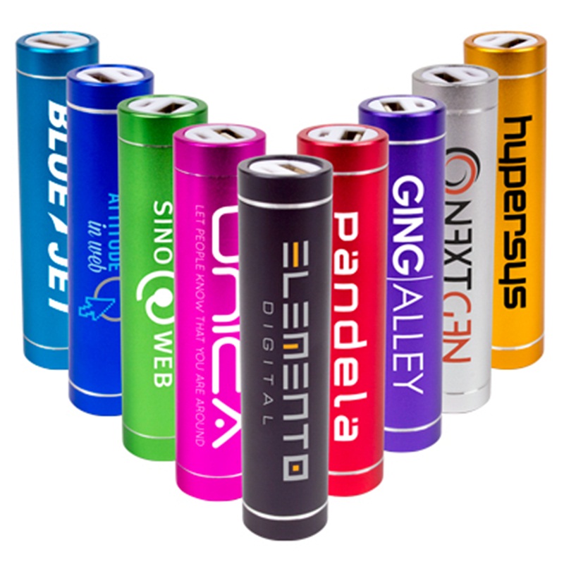 - Product Description: Cylinder shaped power bank charger, available in a variety of colours. Can be laser engraved or screen printed with your logo. Supplied with a micro USB cable & white cardboard gift box.