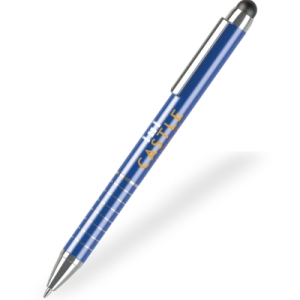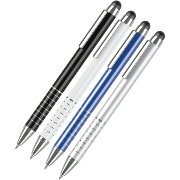 - Product Description:Â Aluminium twist-action ballpen with distinctive ringed grip design. Choose from a range of executive colours and brand with printing or laser engraving. Includes a stylus for touchscreen devices and comes with blue ink as standard.
